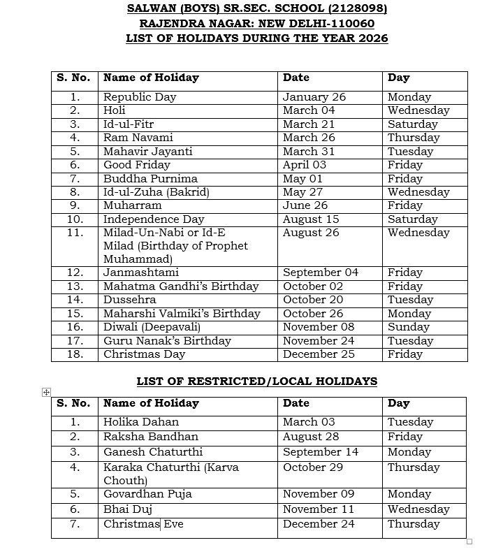 *Dates are tentative & subject to change as per guidelines issued by Directorate of Education.