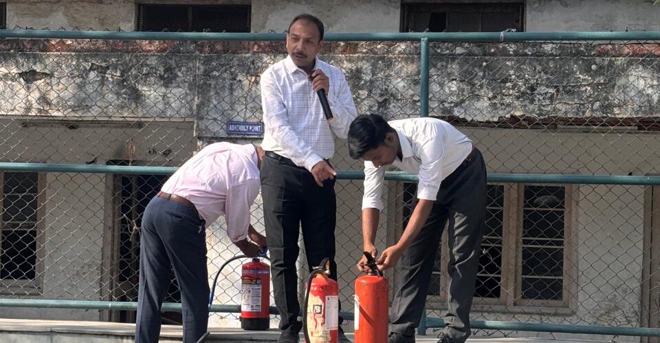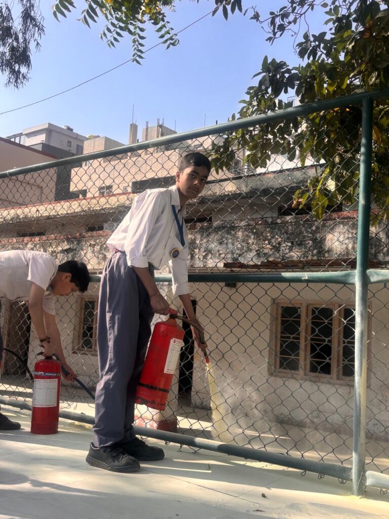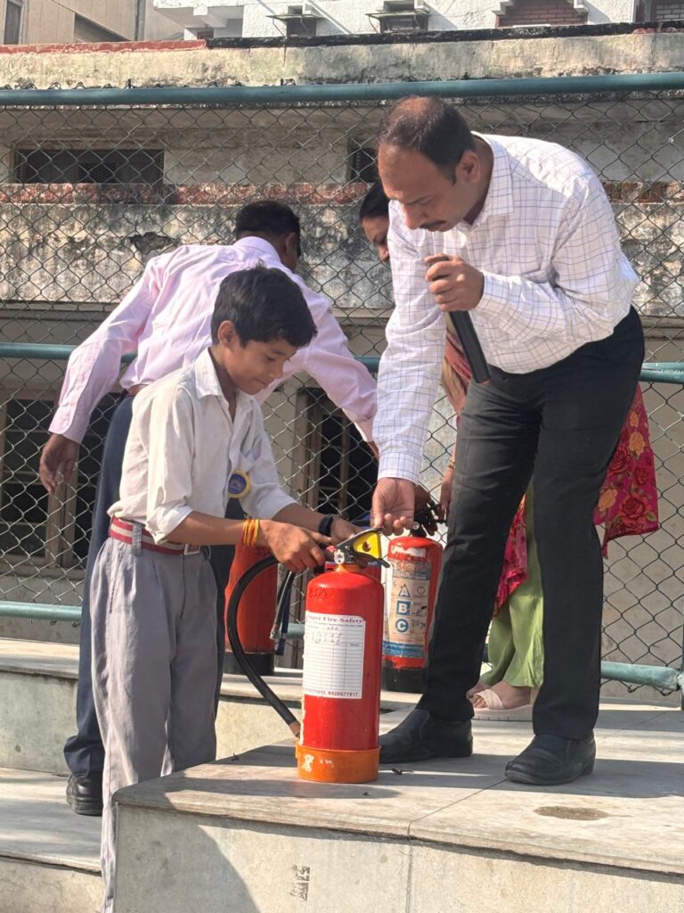 The session was effectively led by Mr. Ashutosh Kumar Singh (TGT Social Science) along with Mr. Baldev Singh (Lab Assistant). They demonstrated the correct usage of a fire extinguisher (fire cylinder) and explained the essential steps to be followed during a fire-related emergency.